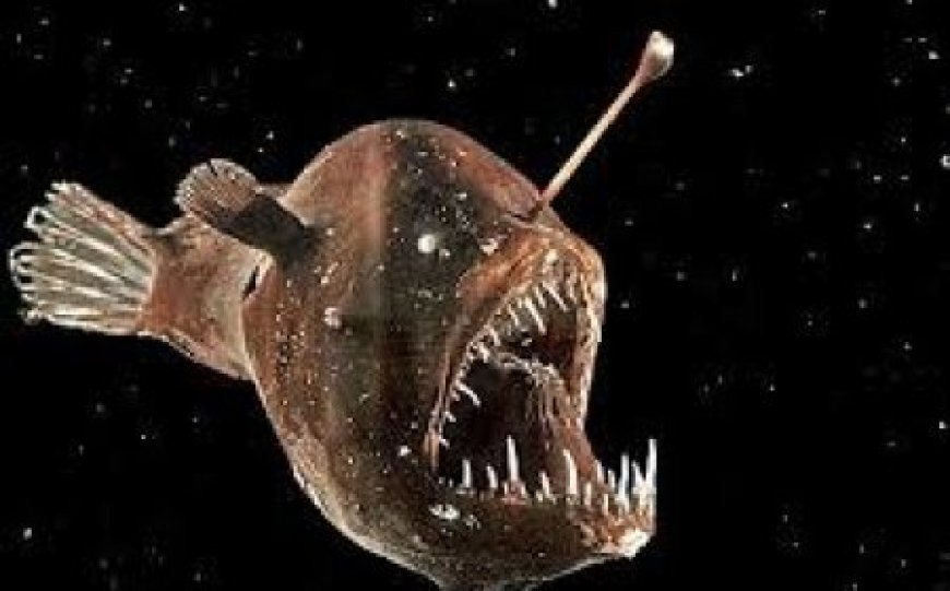 Anglerfish are equipped with a specialised adaptation above the eye known as the illicium, often described as a fishing rod. At the end of this structure is a bioluminescent lure called the esca, which produces light in the complete darkness of the deep sea.
